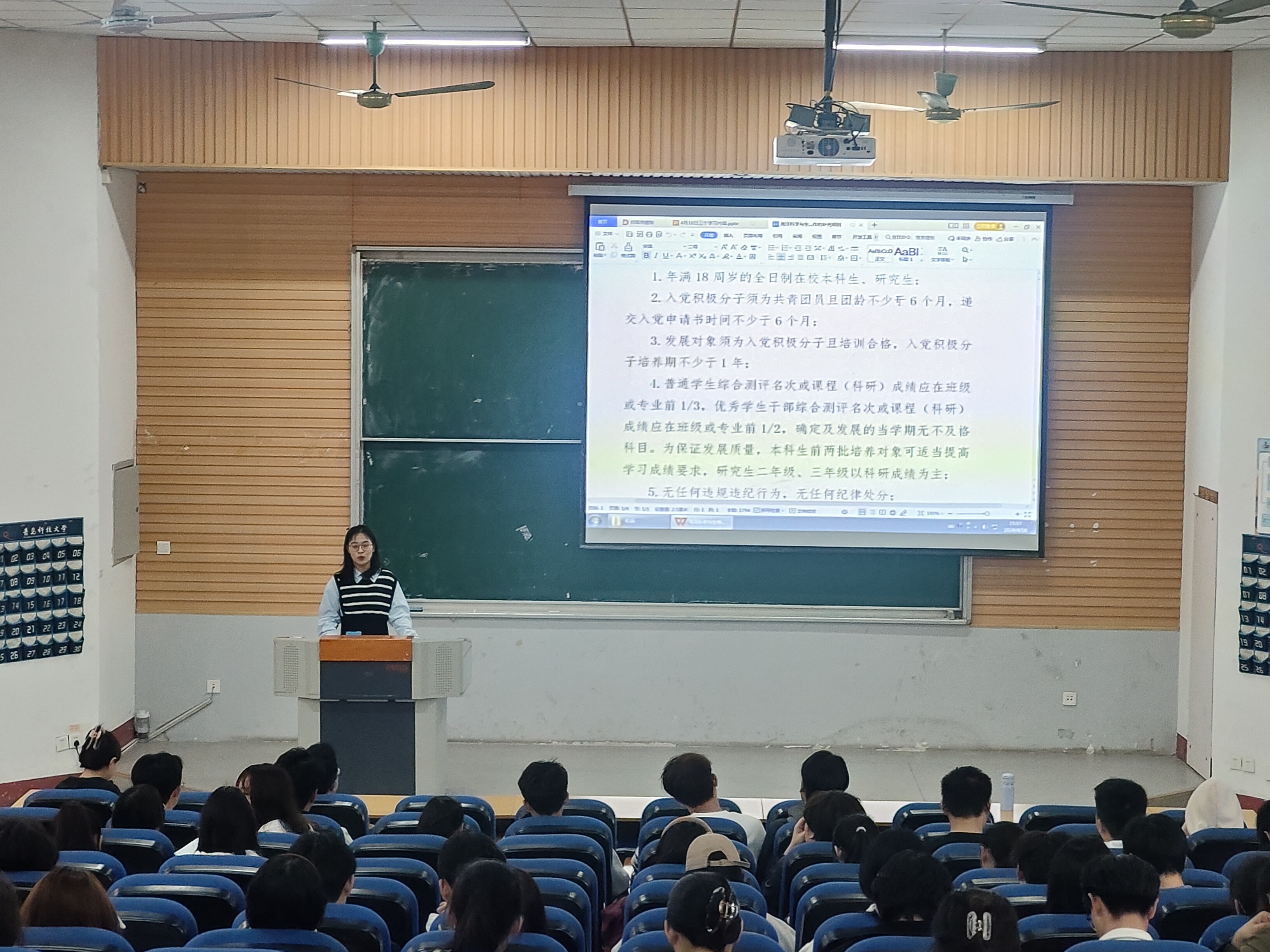 吕珊珊以《如何做一名优秀的党员》为题,为全体参会学生解读《海洋学院党员发展补充细则》,对全体发展对象和入党积极分子提出了具体要求与方向指引,突出目标导向,鼓励全体学生全面发展,为学院学科建设和专业发展做贡献。