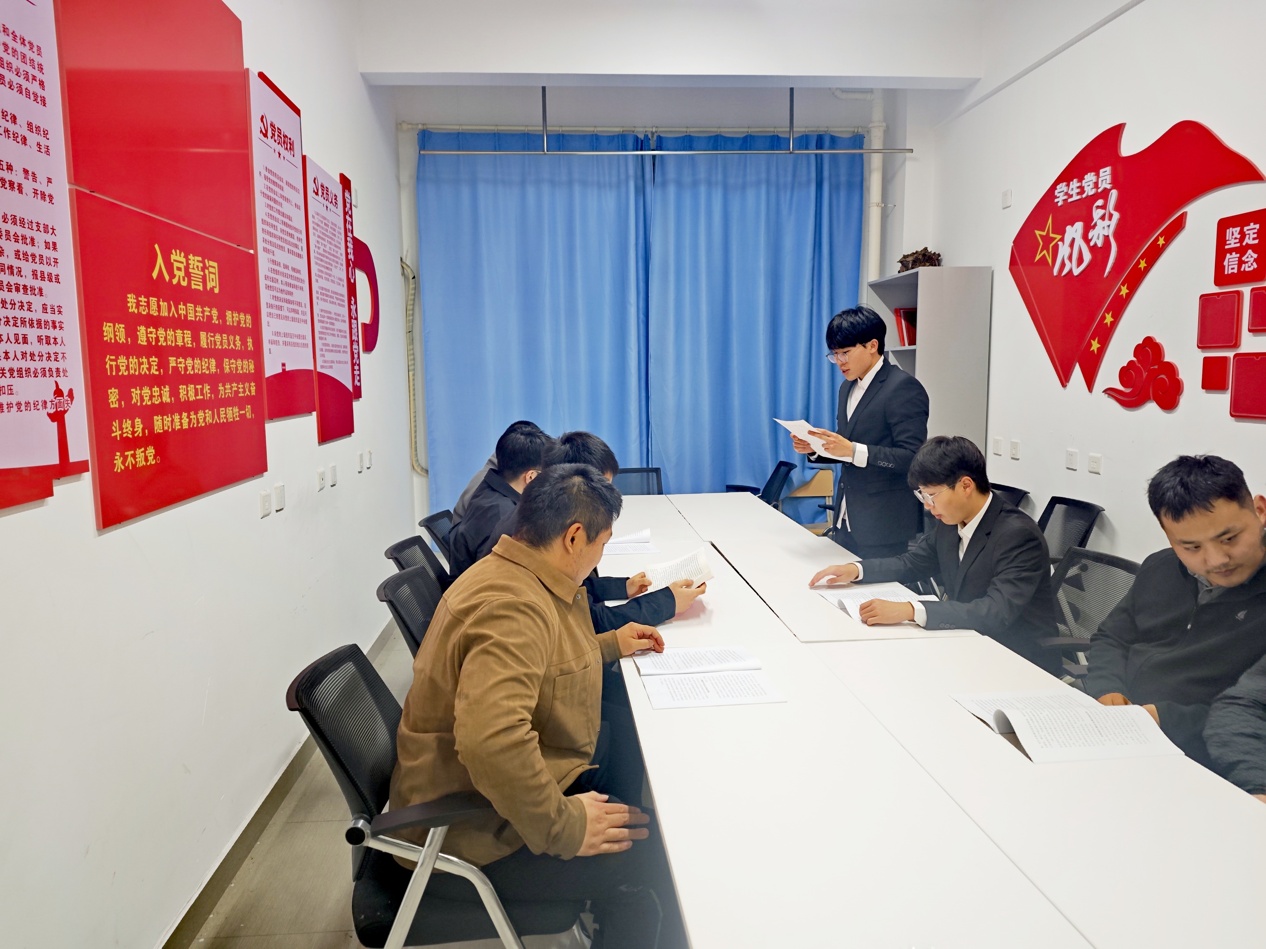 最后,全体党员面向党旗重温入党誓词,并集中学习了《中国共产党章程》的基本内容和《中国共产党纪律处分条例》的基本规定,通过具体的案例分析让党员们对党纪党规有了更清晰的认识。期间,每位党员结合自身岗位职责,讨论了在日常工作中如何严格遵守党章党规,做到廉洁自律。