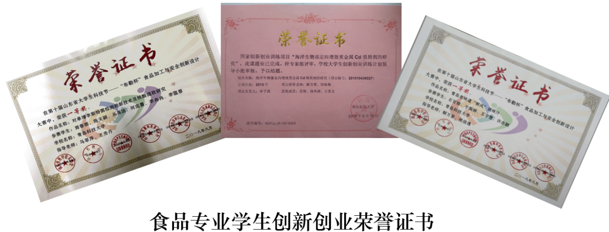 培养质量高:2017年以来平均考研率近50%,已获批多项国家级和校级大学生创新创业训练计划项目;另外,在第十届山东省大学生科技节——“布勒杯”食品加工与安全创新设计大赛中,本专业本科生参与的2件作品荣获一等奖。