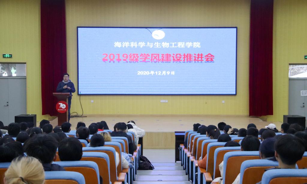 12月9日上午,海洋学院2019级学风建设推进会在尚舜报告厅举行,海洋学院专兼职辅导员、2019级211名学生全部参加。会议由海洋学院学工办主任兼团委书记、2019级辅导员李浩主持。